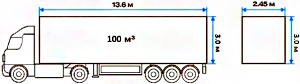 Габариты: 8.0 + 8.0 X 2.45 X фургон: 2.95 прицеп: 3.0